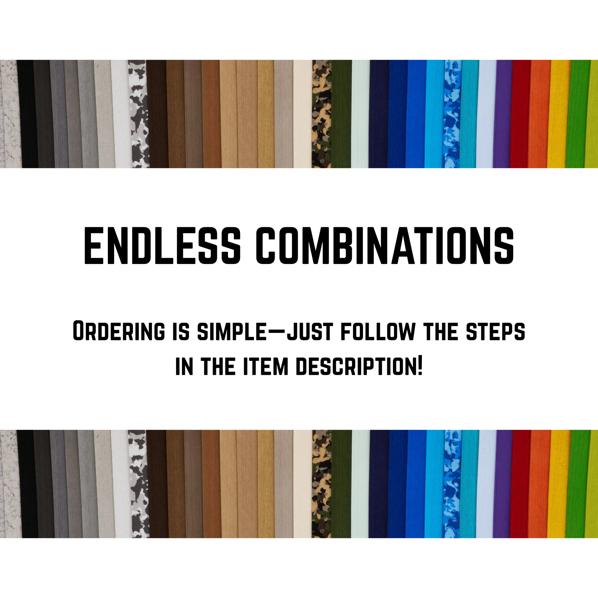 Custom orders include your choice of two colors (top/bottom). Please note: Lead time for custom work is approximately 4–5 weeks from the date of order placement. Once your order is submitted, a member of our team will contact you on the next business day to confirm your color selection.